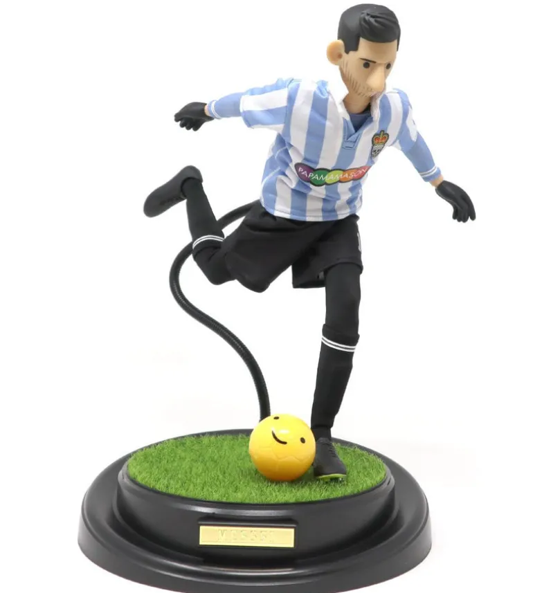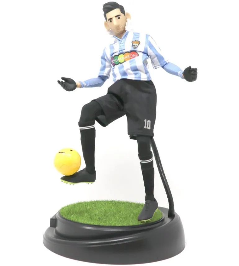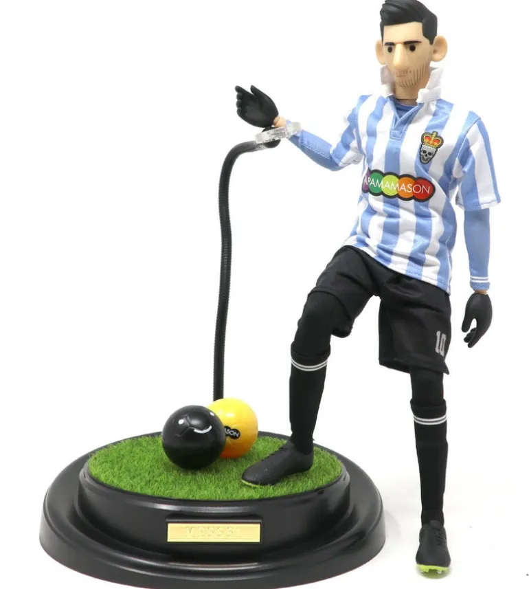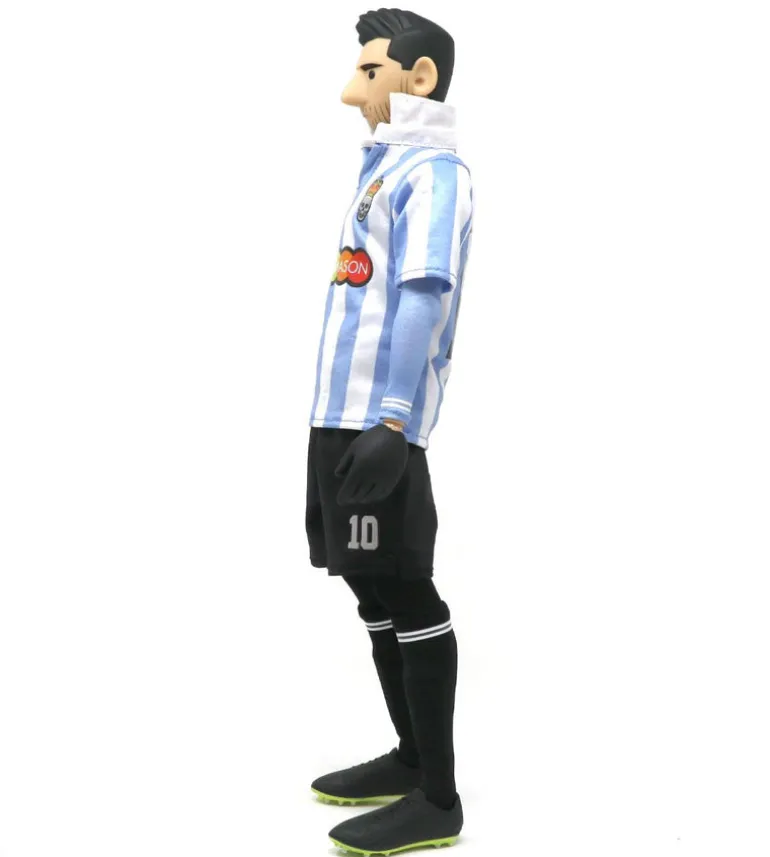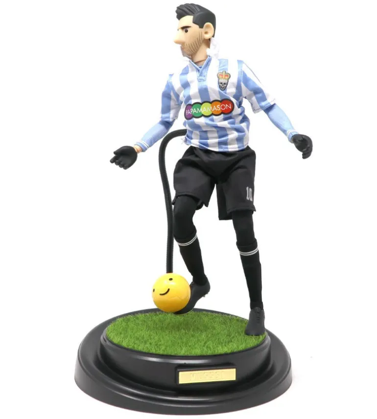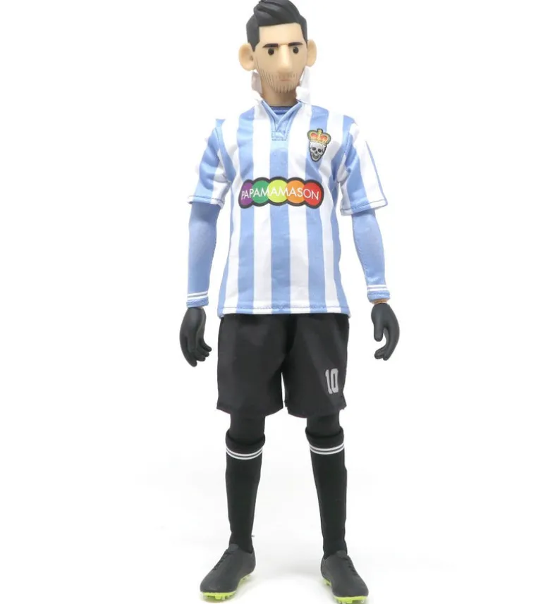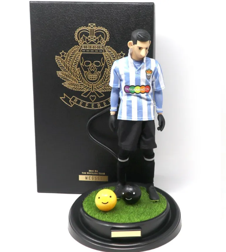 El artista Eric así lanzado en la realización de una serie llamada El equipo diabólico ! Una serie que ocupa el estilo del artista con un deseo realista en el universo del fútbol, como lo demuestra la posibilidad de sentar las figuras de acción. Aquí la figura está inspirada por Messi con su camiseta argentina.